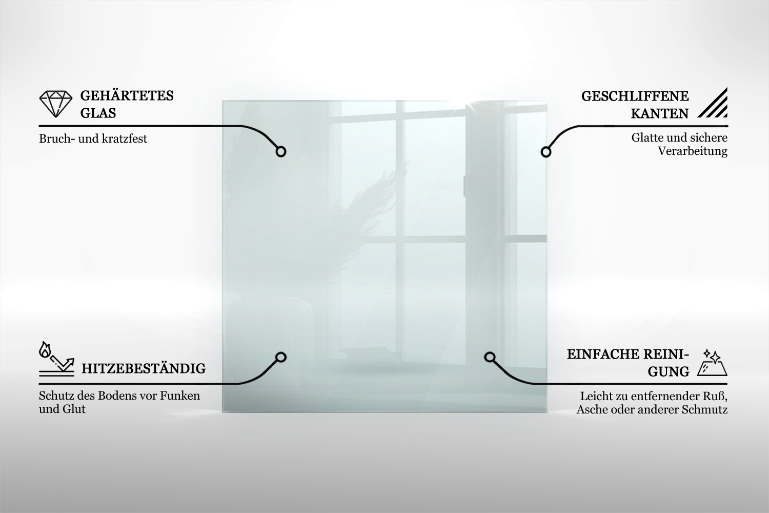 Glasplatte für Kamin transparent ist ein Detail, das den Charakter eines Wohnzimmers völlig verändern kann. Die transparente Oberfläche vermittelt den Eindruck eines aufgeräumten und stilvollen Raums und die polierten Kanten sorgen für eine subtile Zartheit. Stellen Sie es vor den Kamin, um Harmonie und Ausgeglichenheit zu schaffen. Es schützt den Boden perfekt und unterstreicht gleichzeitig den Charme des Kamins. Unabhängig davon, in welchem Stil Ihr Interieur dekoriert ist, wird es seine Einzigartigkeit unterstreichen und ihm einen einzigartigen Charakter verleihen.